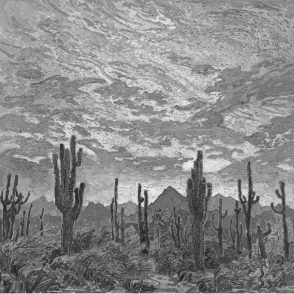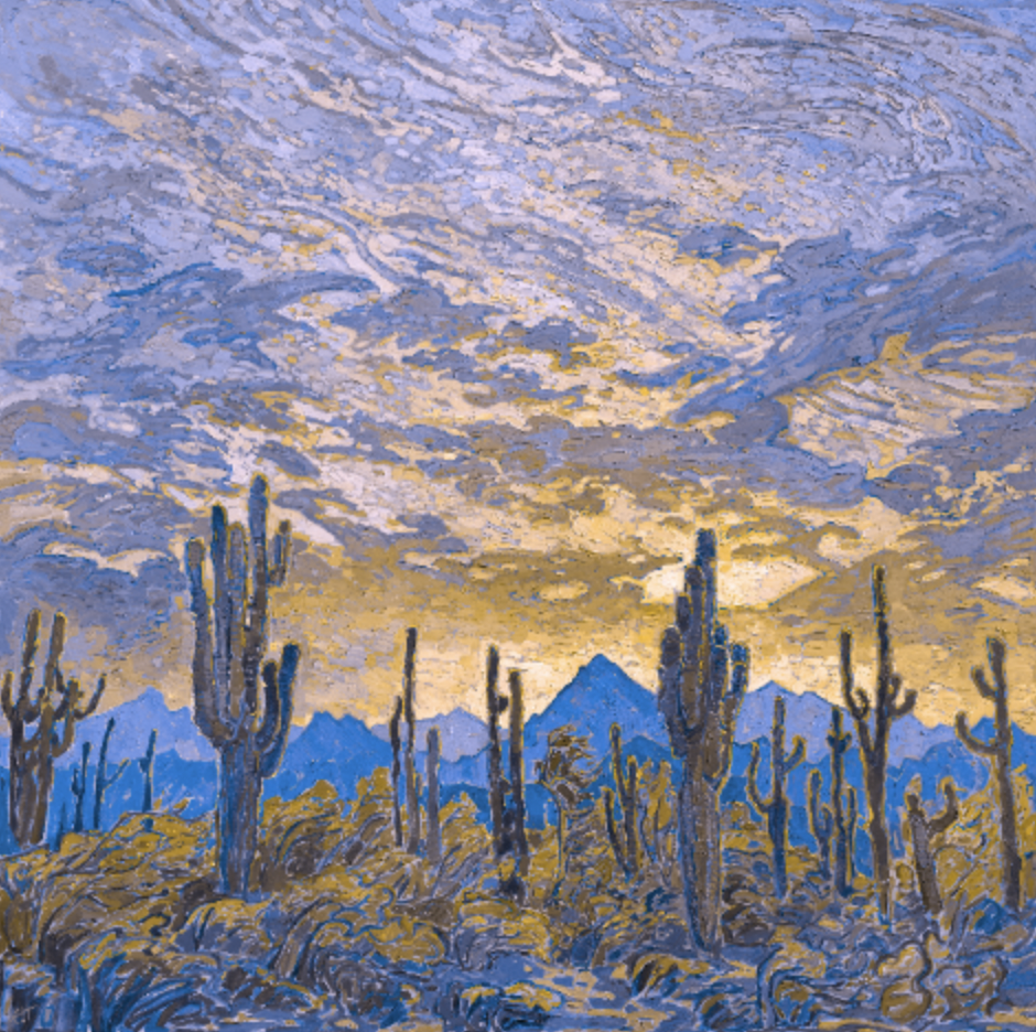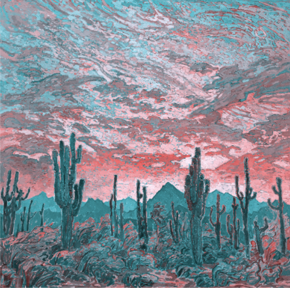 Let's take an example of a more colorful painting, like Saguaro Sky, by Erin Hanson.