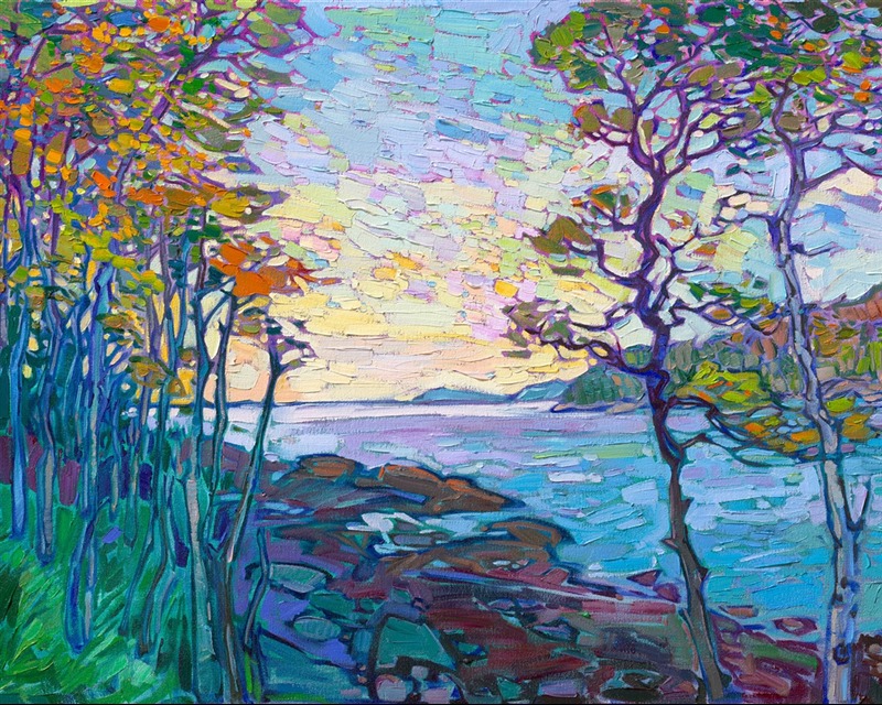 Style: "Open Impressionism" is a new style of painting developed by American artist Erin Hanson. The style is characterized by short, impasto brush strokes that are applied without layering, creating a mosaic or stained-glass appearance to the paintings. The paintings are created with a limited palette of colors, applied without blending or mixing upon the canvas, which adds a dimension of texture to each brush stroke. Inspired by classic impressionism, pointillism, and post-impressionism, Erin Hanson continues the tradition of impressionism into the modern day with her colorful and vivacious landscape paintings.
