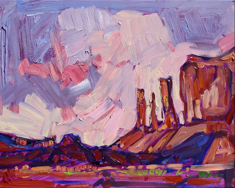 Note on varnishing: Erin’s paintings take six to eight weeks to dry, at which time we apply a retouching varnish, which allows the painting to complete the curing process while having a layer of protection against dirt and scuffs. The full curing process for an impasto oil painting takes at least two years. We are happy to assist in applying a final finishing varnish to your Erin Hanson oil painting once it has been dry for at least two years. Here is more information on how to care for your original oil painting.