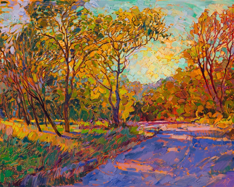 Erin devoted three years to perfecting the technology of 3D art printing in a quest to create a fine art print that captured her vibrant colors and reproduced the texture crucial to her artistic vision. The rhythms of texture in her luscious, impasto oil paintings communicate the movement and joy she finds in nature.