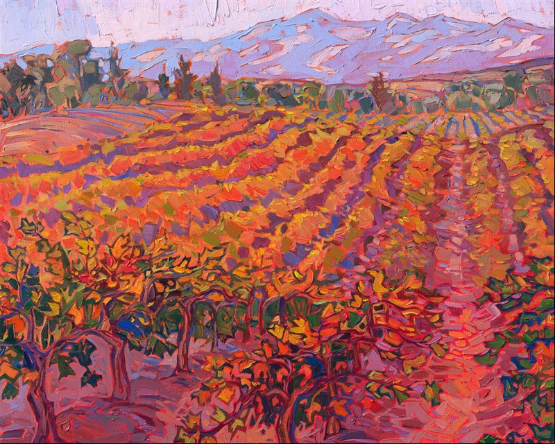 Please note: This painting will be hanging in a museum exhibition until November 5th, 2023. This piece is included in the show Erin Hanson: Color on the Vine at the Bone Creek Museum of Agrarian Art in Nebraska. You may purchase the painting now, but you will not receive the painting until after the show ends in November 2023.