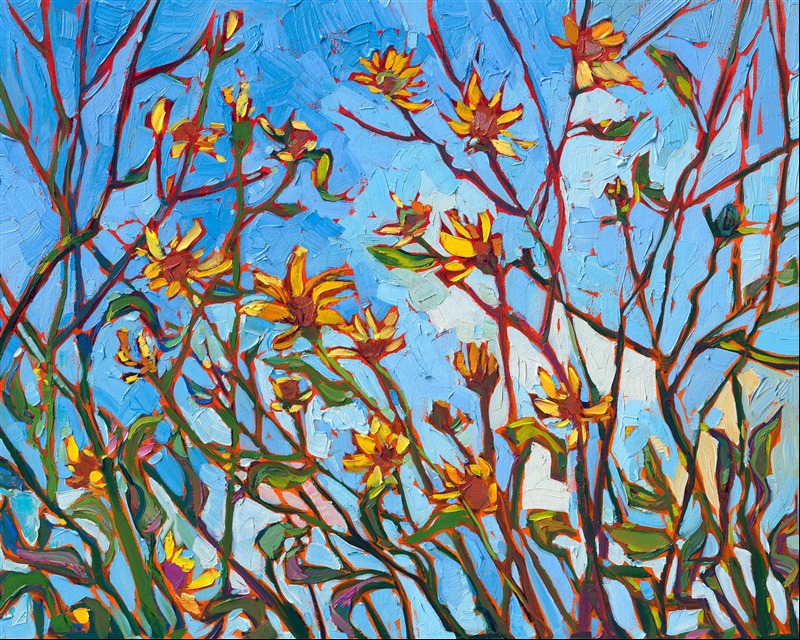 Erin devoted three years to perfecting the technology of 3D art printing in a quest to create a fine art print that captured her vibrant colors and reproduced the texture crucial to her artistic vision. The rhythms of texture in her luscious, impasto oil paintings communicate the movement and joy she finds in nature.