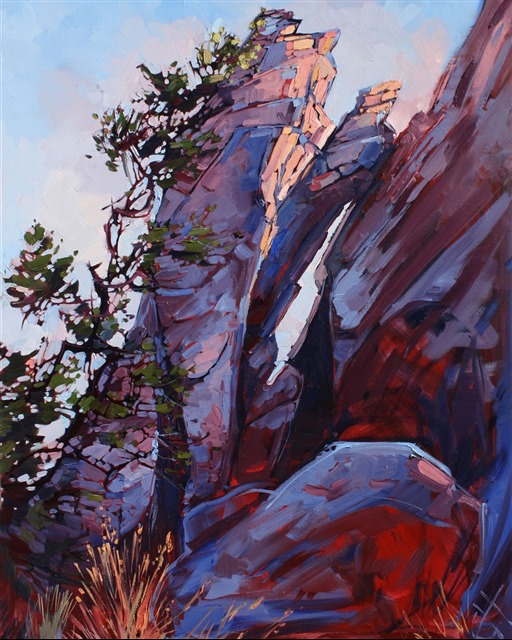 ERIN HANSON has been painting in oils since she was 8 years old. As a teenager, she apprenticed at a mural studio where she worked on 40-foot-long paintings while selling art commissions on the side. After being told it was too hard to make a living as an artist, she got her degree in Bioengineering from UC Berkeley. Afterward, Erin became a rock climber at Red Rock Canyon, Nevada. Inspired by the colorful scenery she was climbing, she decided to return to her love of painting and create one new painting every week.