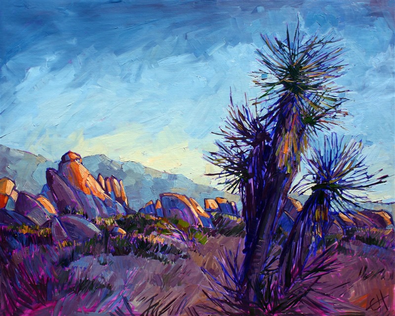 Style: "Open Impressionism" is a new style of painting developed by American artist Erin Hanson. The style is characterized by short, impasto brush strokes that are applied without layering, creating a mosaic or stained-glass appearance to the paintings. The paintings are created with a limited palette of colors, applied without blending or mixing upon the canvas, which adds a dimension of texture to each brush stroke. Inspired by classic impressionism, pointillism, and post-impressionism, Erin Hanson continues the tradition of impressionism into the modern day with her colorful and vivacious landscape paintings.
