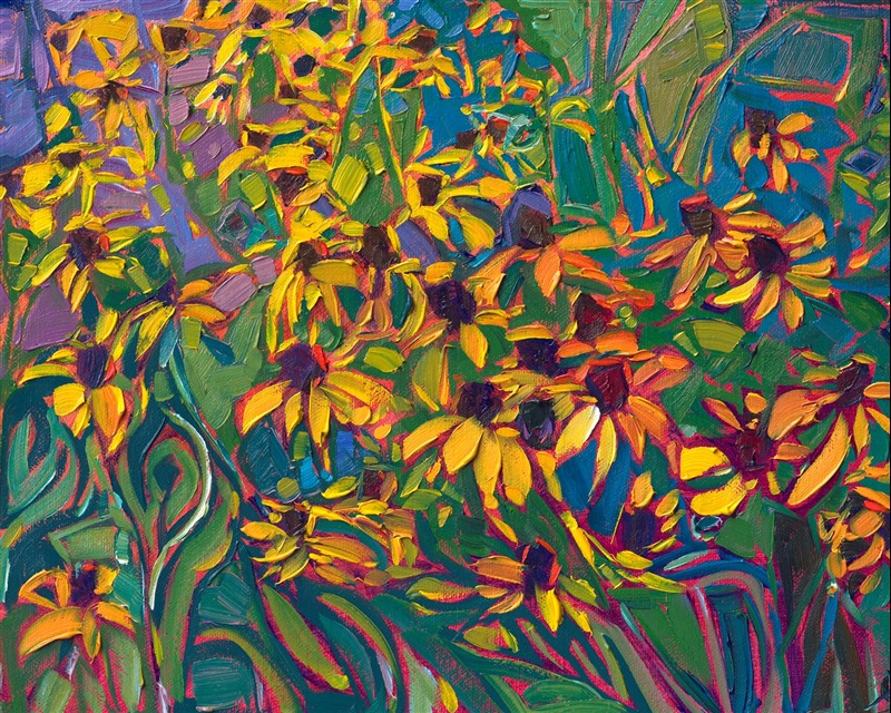 Erin devoted three years to perfecting the technology of 3D art printing in a quest to create a fine art print that captured her vibrant colors and reproduced the texture crucial to her artistic vision. The rhythms of texture in her luscious, impasto oil paintings communicate the movement and joy she finds in nature.