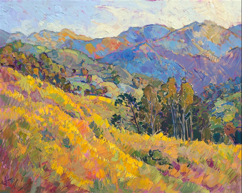 Erin devoted three years to perfecting the technology of 3D art printing in a quest to create a fine art print that captured her vibrant colors and reproduced the texture crucial to her artistic vision. The rhythms of texture in her luscious, impasto oil paintings communicate the movement and joy she finds in nature.
