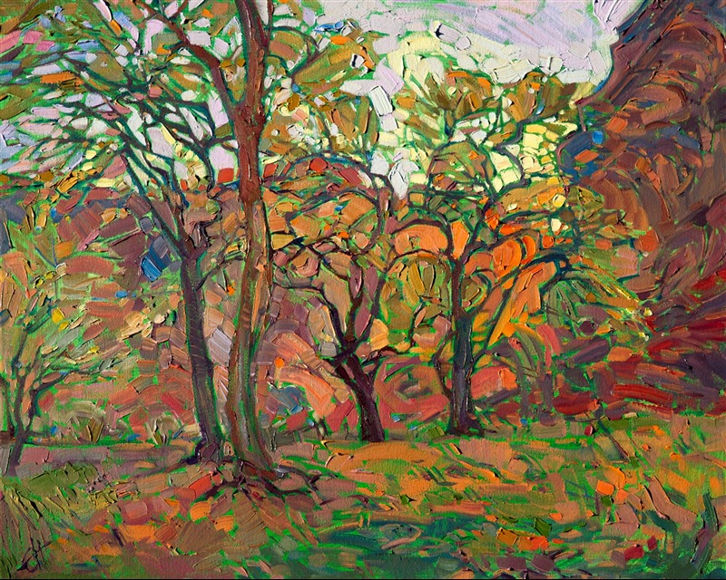 Erin devoted three years to perfecting the technology of 3D art printing in a quest to create a fine art print that captured her vibrant colors and reproduced the texture crucial to her artistic vision. The rhythms of texture in her luscious, impasto oil paintings communicate the movement and joy she finds in nature.