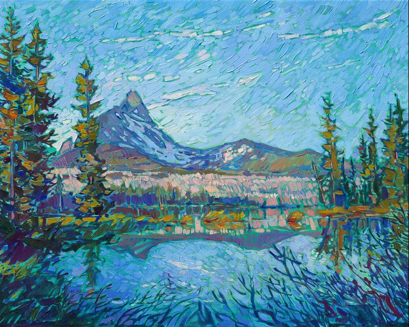 Style: "Open Impressionism" is a new style of painting developed by American artist Erin Hanson. The style is characterized by short, impasto brush strokes that are applied without layering, creating a mosaic or stained-glass appearance to the paintings. The paintings are created with a limited palette of colors, applied without blending or mixing upon the canvas, which adds a dimension of texture to each brush stroke. Inspired by classic impressionism, pointillism, and post-impressionism, Erin Hanson continues the tradition of impressionism into the modern day with her colorful and vivacious landscape paintings.