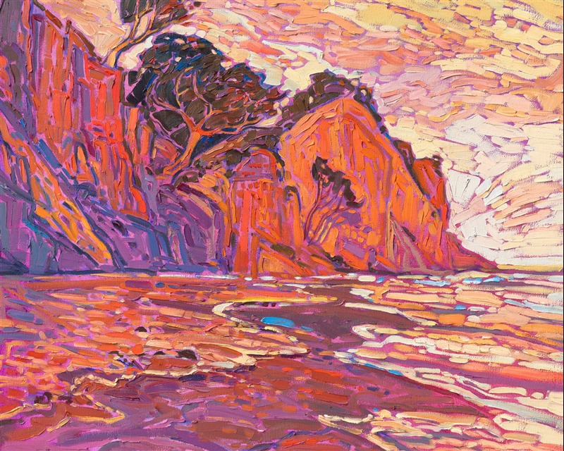 "Coastal in Orange" was displayed at Erin Hanson's solo museum show Erin Hanson: Alchemist of Color at the Channel Islands Maritime Museum in Oxnard, California.