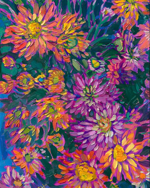 Erin Hanson's 3D Textured Replicas are almost indistinguishable from the original painting from a short distance away, capturing the texture of every brush stroke and weave of the canvas, as well as the vibrant colors of the original oil painting. These are the most realistic painting reproductions available with today's 3D scanning and printing technology.