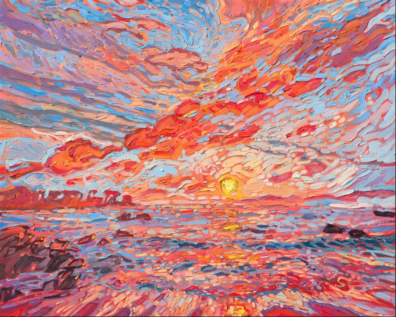 Erin Hanson's 3D Textured Replicas are almost indistinguishable from the original painting from a short distance away, capturing the texture of every brush stroke and weave of the canvas, as well as the vibrant colors of the original oil painting. These are the most realistic painting reproductions available with today's 3D scanning and printing technology.