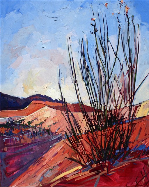 Style: "Open Impressionism" is a new style of painting developed by American artist Erin Hanson. The style is characterized by short, impasto brush strokes that are applied without layering, creating a mosaic or stained-glass appearance to the paintings. The paintings are created with a limited palette of colors, applied without blending or mixing upon the canvas, which adds a dimension of texture to each brush stroke. Inspired by classic impressionism, pointillism, and post-impressionism, Erin Hanson continues the tradition of impressionism into the modern day with her colorful and vivacious landscape paintings.