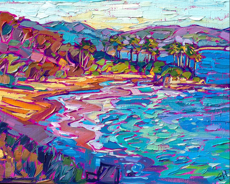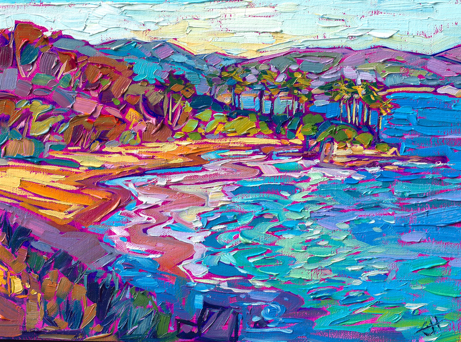 Southern California's coastline is captured here in thick brush strokes and vivid colors, by modern impressionist Erin Hanson.