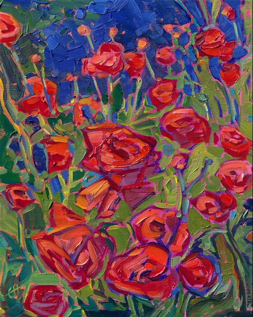 Erin devoted three years to perfecting the technology of 3D art printing in a quest to create a fine art print that captured her vibrant colors and reproduced the texture crucial to her artistic vision. The rhythms of texture in her luscious, impasto oil paintings communicate the movement and joy she finds in nature.