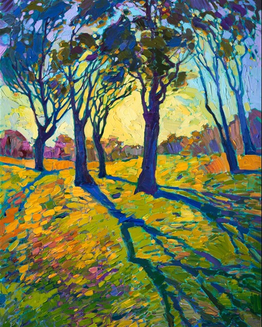 A representative of The Erin Hanson Gallery will arrange delivery of your Erin Hanson original oil painting. We will ensure someone is home to receive the artwork before shipping it out. Erin Hanson usually sells half of her original paintings while they are still drying on the dry rack. If your painting is still drying, we will let you know when it is expected to be fully dry and ready to ship (about six to eight weeks after the painting's completion.)