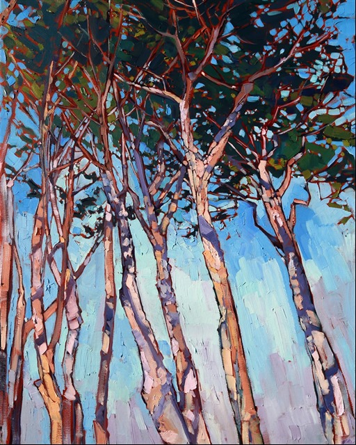 Erin devoted three years to perfecting the technology of 3D art printing in a quest to create a fine art print that captured her vibrant colors and reproduced the texture crucial to her artistic vision. The rhythms of texture in her luscious, impasto oil paintings communicate the movement and joy she finds in nature.