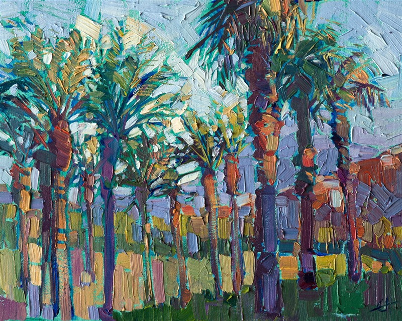 Date Palms in La Quinta inspired this landscape oil painting. The vibrant colors and abstracted shapes makes the painting come alive on the canvas.