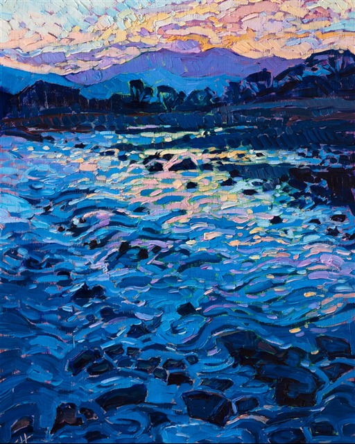 Style: "Open Impressionism" is a new style of painting developed by American artist Erin Hanson. The style is characterized by short, impasto brush strokes that are applied without layering, creating a mosaic or stained-glass appearance to the paintings. The paintings are created with a limited palette of colors, applied without blending or mixing upon the canvas, which adds a dimension of texture to each brush stroke. Inspired by classic impressionism, pointillism, and post-impressionism, Erin Hanson continues the tradition of impressionism into the modern day with her colorful and vivacious landscape paintings.