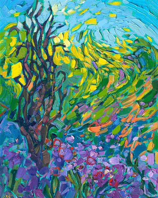 Erin devoted three years to perfecting the technology of 3D art printing in a quest to create a fine art print that captured her vibrant colors and reproduced the texture crucial to her artistic vision. The rhythms of texture in her luscious, impasto oil paintings communicate the movement and joy she finds in nature.