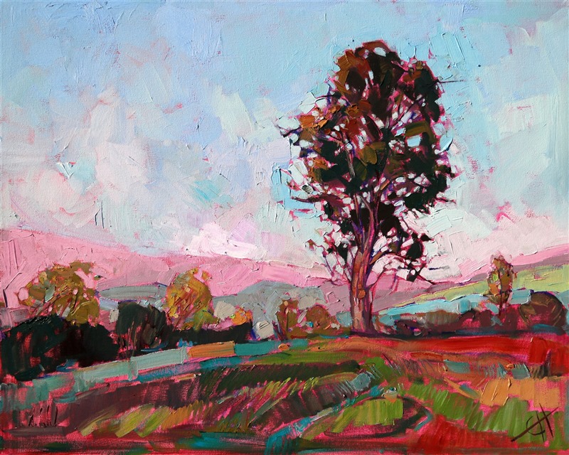 Style: "Open Impressionism" is a new style of painting developed by American artist Erin Hanson. The style is characterized by short, impasto brush strokes that are applied without layering, creating a mosaic or stained-glass appearance to the paintings. The paintings are created with a limited palette of colors, applied without blending or mixing upon the canvas, which adds a dimension of texture to each brush stroke. Inspired by classic impressionism, pointillism, and post-impressionism, Erin Hanson continues the tradition of impressionism into the modern day with her colorful and vivacious landscape paintings.