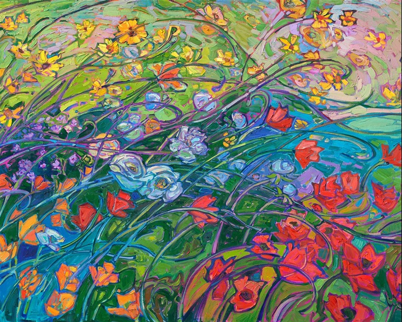 Erin devoted three years to perfecting the technology of 3D art printing in a quest to create a fine art print that captured her vibrant colors and reproduced the texture crucial to her artistic vision. The rhythms of texture in her luscious, impasto oil paintings communicate the movement and joy she finds in nature.