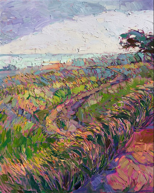 Style: "Open Impressionism" is a new style of painting developed by American artist Erin Hanson. The style is characterized by short, impasto brush strokes that are applied without layering, creating a mosaic or stained-glass appearance to the paintings. The paintings are created with a limited palette of colors, applied without blending or mixing upon the canvas, which adds a dimension of texture to each brush stroke. Inspired by classic impressionism, pointillism, and post-impressionism, Erin Hanson continues the tradition of impressionism into the modern day with her colorful and vivacious landscape paintings.