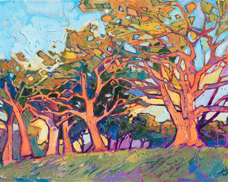 Erin devoted three years to perfecting the technology of 3D art printing in a quest to create a fine art print that captured her vibrant colors and reproduced the texture crucial to her artistic vision. The rhythms of texture in her luscious, impasto oil paintings communicate the movement and joy she finds in nature.