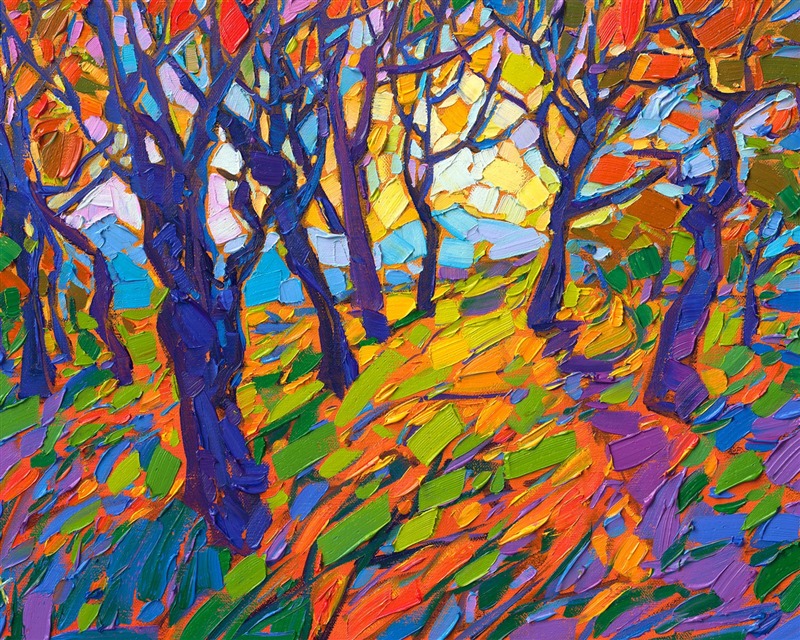 Erin devoted three years to perfecting the technology of 3D art printing in a quest to create a fine art print that captured her vibrant colors and reproduced the texture crucial to her artistic vision. The rhythms of texture in her luscious, impasto oil paintings communicate the movement and joy she finds in nature.