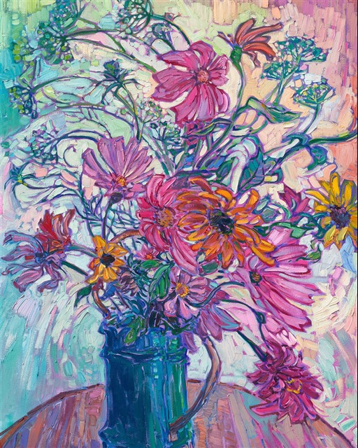 Erin devoted three years to perfecting the technology of 3D art printing in a quest to create a fine art print that captured her vibrant colors and reproduced the texture crucial to her artistic vision. The rhythms of texture in her luscious, impasto oil paintings communicate the movement and joy she finds in nature.