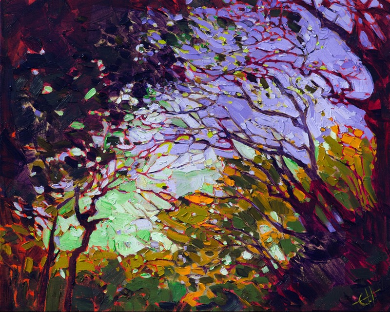 Erin devoted three years to perfecting the technology of 3D art printing in a quest to create a fine art print that captured her vibrant colors and reproduced the texture crucial to her artistic vision. The rhythms of texture in her luscious, impasto oil paintings communicate the movement and joy she finds in nature.