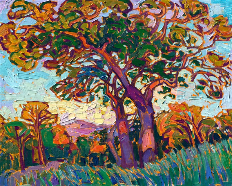 Erin devoted three years to perfecting the technology of 3D art printing in a quest to create a fine art print that captured her vibrant colors and reproduced the texture crucial to her artistic vision. The rhythms of texture in her luscious, impasto oil paintings communicate the movement and joy she finds in nature.