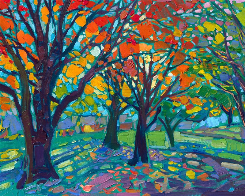 Erin devoted three years to perfecting the technology of 3D art printing in a quest to create a fine art print that captured her vibrant colors and reproduced the texture crucial to her artistic vision. The rhythms of texture in her luscious, impasto oil paintings communicate the movement and joy she finds in nature.