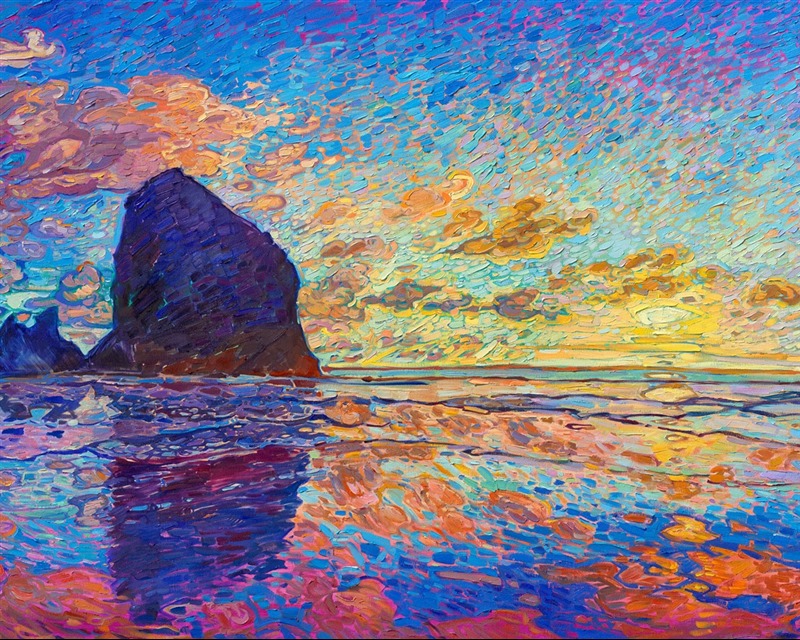 "Haystack Rock" will be on display at The Erin Hanson Gallery for The Colossal Collection on August 9th, 2025. You are welcome to join us for the Artist's reception! You may purchase this painting in advance, but the piece will not ship until after August 9th.