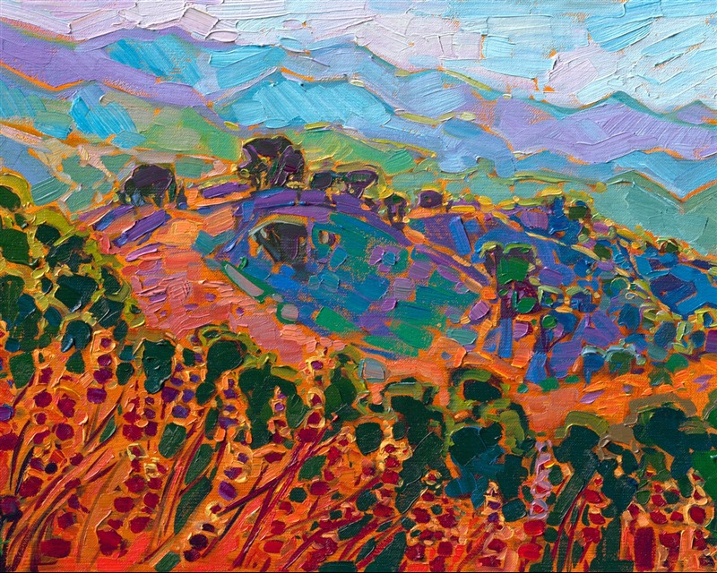 Erin devoted three years to perfecting the technology of 3D art printing in a quest to create a fine art print that captured her vibrant colors and reproduced the texture crucial to her artistic vision. The rhythms of texture in her luscious, impasto oil paintings communicate the movement and joy she finds in nature.