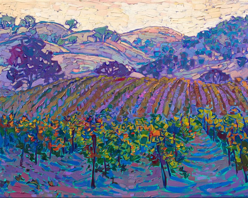 A representative of The Erin Hanson Gallery will arrange delivery of your Erin Hanson original oil painting. We will ensure someone is home to receive the artwork before shipping it out. Erin Hanson usually sells half of her original paintings while they are still drying on the dry rack. If your painting is still drying, we will let you know when it is expected to be fully dry and ready to ship (about six to eight weeks after the painting's completion.)