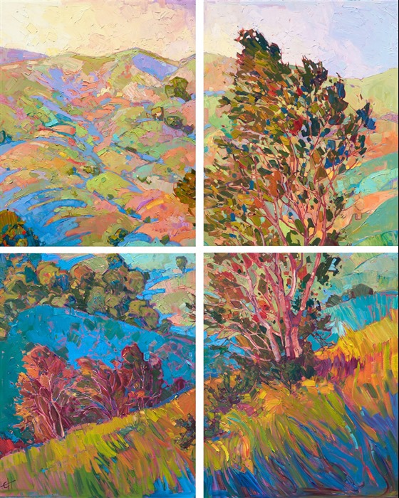 Erin devoted three years to perfecting the technology of 3D art printing in a quest to create a fine art print that captured her vibrant colors and reproduced the texture crucial to her artistic vision. The rhythms of texture in her luscious, impasto oil paintings communicate the movement and joy she finds in nature.