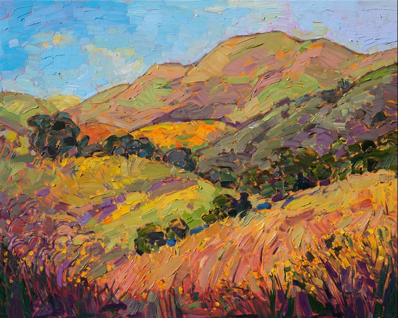 Erin devoted three years to perfecting the technology of 3D art printing in a quest to create a fine art print that captured her vibrant colors and reproduced the texture crucial to her artistic vision. The rhythms of texture in her luscious, impasto oil paintings communicate the movement and joy she finds in nature.