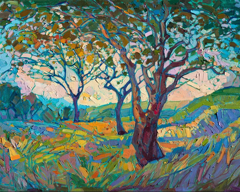 Erin devoted three years to perfecting the technology of 3D art printing in a quest to create a fine art print that captured her vibrant colors and reproduced the texture crucial to her artistic vision. The rhythms of texture in her luscious, impasto oil paintings communicate the movement and joy she finds in nature.