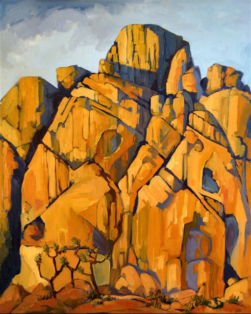 Original oil painting of a granite rock formation at Joshua Tree National Park, a popular rock climbing destination.