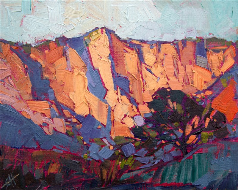 This small oil painting of Kolob Canyon captures the immense beauty of Zion National Park in just a few brush strokes.