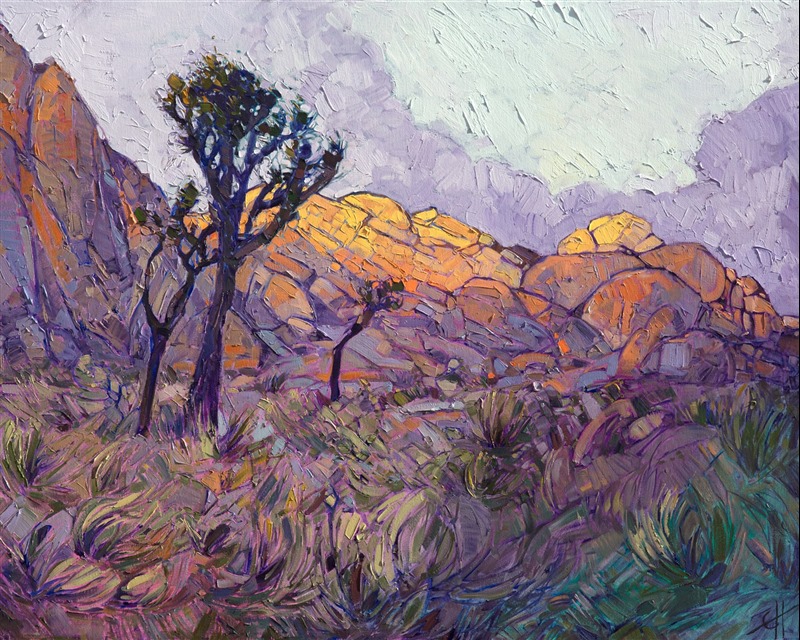 Style: "Open Impressionism" is a new style of painting developed by American artist Erin Hanson. The style is characterized by short, impasto brush strokes that are applied without layering, creating a mosaic or stained-glass appearance to the paintings. The paintings are created with a limited palette of colors, applied without blending or mixing upon the canvas, which adds a dimension of texture to each brush stroke. Inspired by classic impressionism, pointillism, and post-impressionism, Erin Hanson continues the tradition of impressionism into the modern day with her colorful and vivacious landscape paintings.