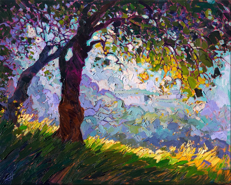 Erin devoted three years to perfecting the technology of 3D art printing in a quest to create a fine art print that captured her vibrant colors and reproduced the texture crucial to her artistic vision. The rhythms of texture in her luscious, impasto oil paintings communicate the movement and joy she finds in nature.