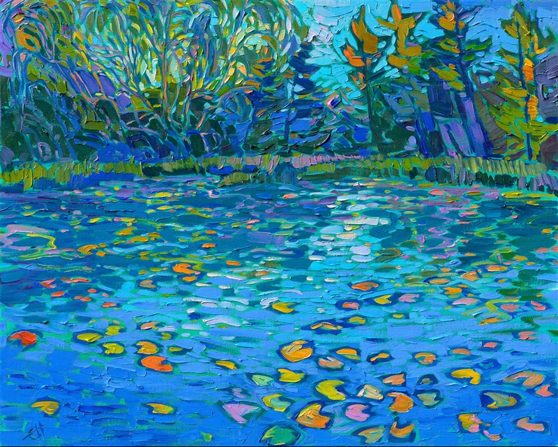 Erin devoted three years to perfecting the technology of 3D art printing in a quest to create a fine art print that captured her vibrant colors and reproduced the texture crucial to her artistic vision. The rhythms of texture in her luscious, impasto oil paintings communicate the movement and joy she finds in nature.