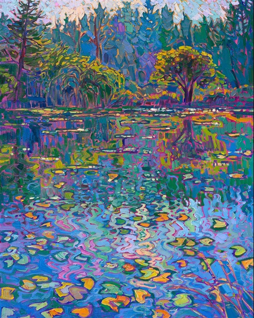 Erin devoted three years to perfecting the technology of 3D art printing in a quest to create a fine art print that captured her vibrant colors and reproduced the texture crucial to her artistic vision. The rhythms of texture in her luscious, impasto oil paintings communicate the movement and joy she finds in nature.