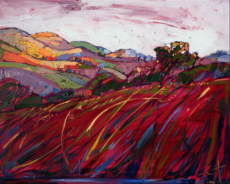 Style: "Open Impressionism" is a new style of painting developed by American artist Erin Hanson. The style is characterized by short, impasto brush strokes that are applied without layering, creating a mosaic or stained-glass appearance to the paintings. The paintings are created with a limited palette of colors, applied without blending or mixing upon the canvas, which adds a dimension of texture to each brush stroke. Inspired by classic impressionism, pointillism, and post-impressionism, Erin Hanson continues the tradition of impressionism into the modern day with her colorful and vivacious landscape paintings.