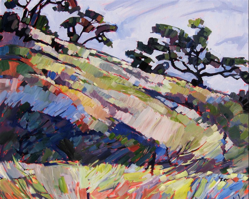 Style: "Open Impressionism" is a new style of painting developed by American artist Erin Hanson. The style is characterized by short, impasto brush strokes that are applied without layering, creating a mosaic or stained-glass appearance to the paintings. The paintings are created with a limited palette of colors, applied without blending or mixing upon the canvas, which adds a dimension of texture to each brush stroke. Inspired by classic impressionism, pointillism, and post-impressionism, Erin Hanson continues the tradition of impressionism into the modern day with her colorful and vivacious landscape paintings.