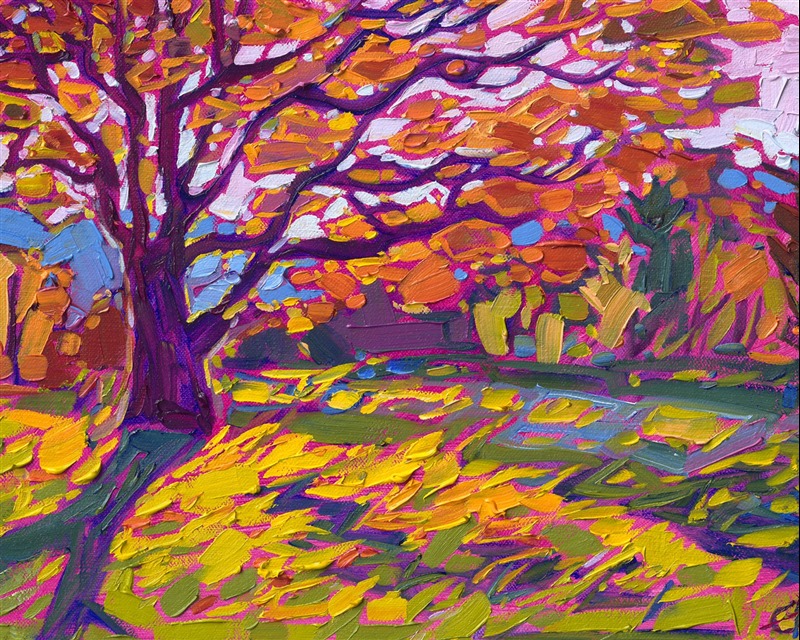 Erin devoted three years to perfecting the technology of 3D art printing in a quest to create a fine art print that captured her vibrant colors and reproduced the texture crucial to her artistic vision. The rhythms of texture in her luscious, impasto oil paintings communicate the movement and joy she finds in nature.