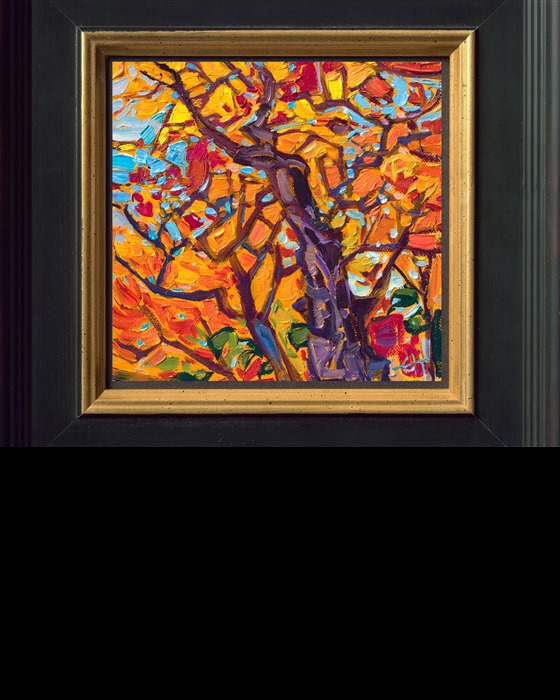 "Maple Petite" is an original oil painting on linen board. The piece arrives framed in a mock floater frame, pictured above.