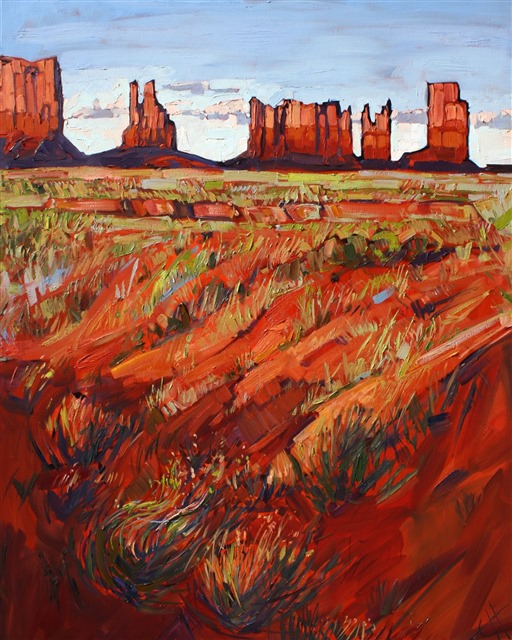 Style: "Open Impressionism" is a new style of painting developed by American artist Erin Hanson. The style is characterized by short, impasto brush strokes that are applied without layering, creating a mosaic or stained-glass appearance to the paintings. The paintings are created with a limited palette of colors, applied without blending or mixing upon the canvas, which adds a dimension of texture to each brush stroke. Inspired by classic impressionism, pointillism, and post-impressionism, Erin Hanson continues the tradition of impressionism into the modern day with her colorful and vivacious landscape paintings.