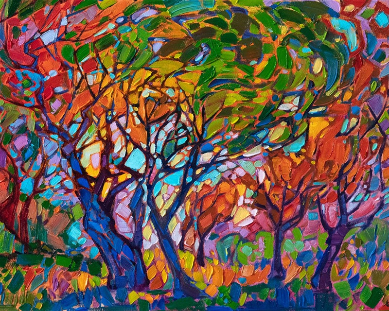 Erin devoted three years to perfecting the technology of 3D art printing in a quest to create a fine art print that captured her vibrant colors and reproduced the texture crucial to her artistic vision. The rhythms of texture in her luscious, impasto oil paintings communicate the movement and joy she finds in nature.